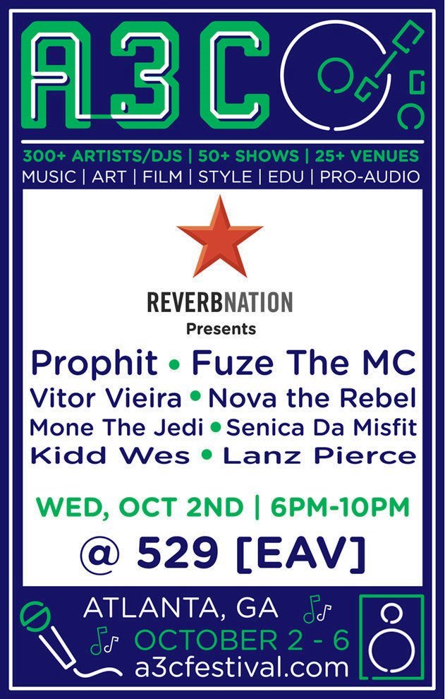 A 9³edição do festival americano A3C receberá entre os dias 2 e 6 de outubro mais de 300 artistas do mundo inteiro e contará com apresentação do brasileiro Vitor Vieira no palco Reverbnation Presents no bairro de East Atlanta Village a partir das 18hs.