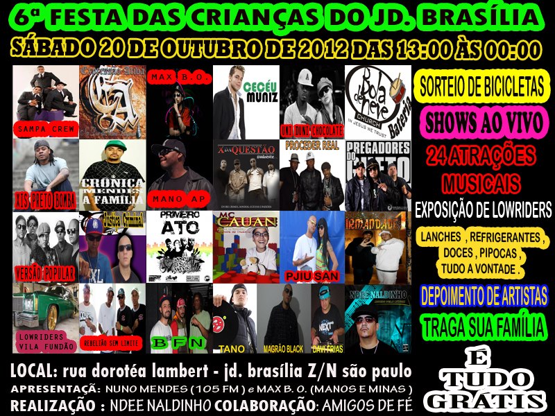 A 6ª Festa das Crianças do JD.Brasília vai levar muito rap para a comunidade