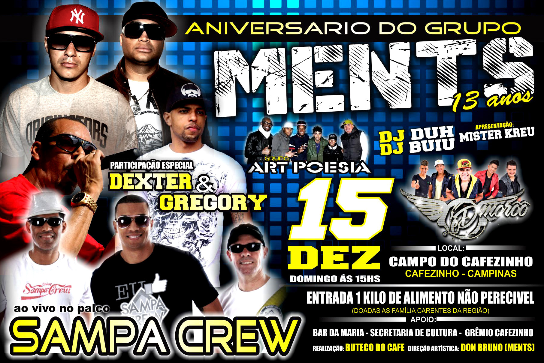 O grupo Ments comemora em dezembro 13 anos de uma honrosa história no RAP NACIONAL. E para celebrar este momento tão importante nada melhor que uma grande festa no Campo de Futebol do Cafezinho, em Campinas/SP.