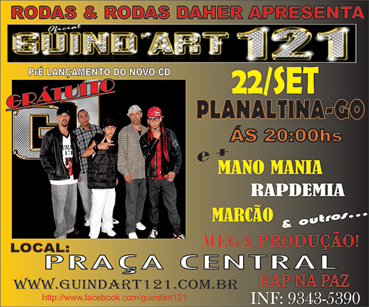 Dia 22 de setembro em Planaltina, GO ás 20h e + Mano Mania, Rapdemia, Marcão e outros.