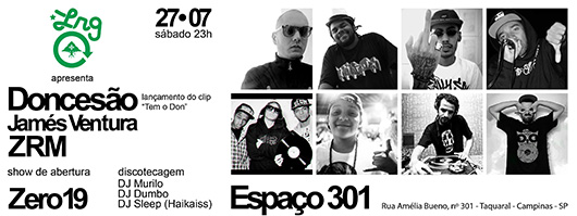 A mil por hora em 2013, no próximo sábado (27), Don Cesão estará lançando seu novo videoclipe em Campinas no Espaço 301, que fica na Rua Amélia Bueno, Nº 301 – Taquaral – Campinas – SP. Mais informações você confere abaixo: