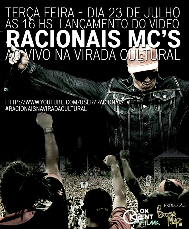 Na próxima terça-feira (23) ás 16 h os Racionais MC’s lançam vídeo do show na Virada Cultural, através do canal do grupo no Youtube e no Portal RAP NACIONAL.